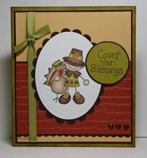 Did y'all see today's Color Throwdown?? I love Fall and I especially love Fall colors so I couldn't pass this combo up. All of the colors go so perfectly together too. I also found this sketch over on Maria's blog and thought I would give it a try as well. My image is stamped with Palette Noir and colored in with Prismacolors and OMS. I went over the little buckles with a Sakura Stardust pen. His hat is cut out and raised with a dimensional. The Saffron cardstock is stamped with the Linen background. To finish it up, I just sponged the edges of the Kiwi cardstock with Close to Cocoa. Thanks for all of the inspiration today ladies!!!